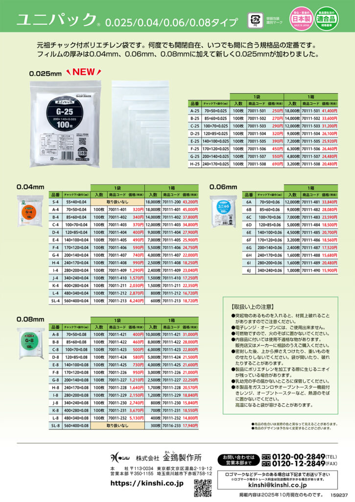 【新商品】ユニパック0.025