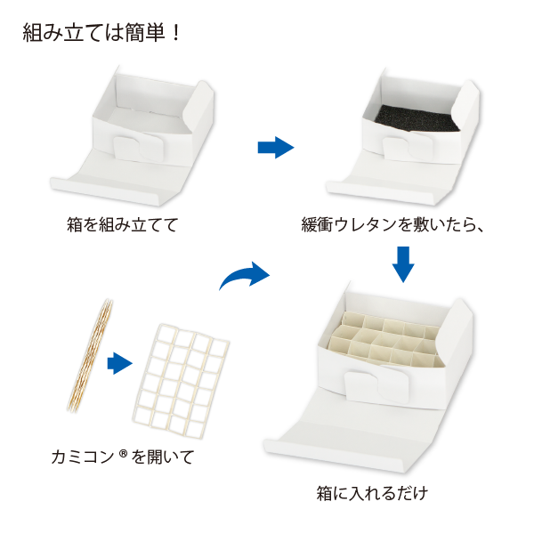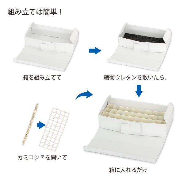 - 仕切りには「カミコン®」を採用しており、簡単に組み立てができます。